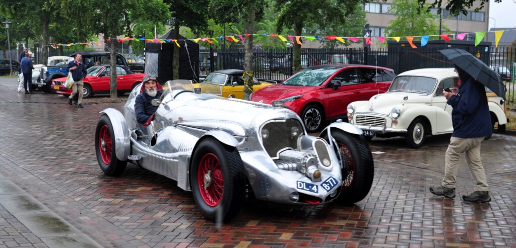 Good-old Charles Serry arriveert in een Bentley en krijgt startnummer 5. Na terugkomst van de Spietentocht vertelt hij een mooi verhaal. Hij staat ingeschreven met z’n blauwe Bentley Old Number One uit 1926(zelf gerestaureerd, 2.000 uur klussen). Vanwege de regen rond de starttijd vond hij het zonde met die open wagen van Hilversum naar Huizen te rijden. Hij meldde zich dus bij de Galerie in zijn andere oldtimer, een gesloten Bentley. Na het begin van de Spietentocht reed hj naar zijn garage, wisselde de ene Bentley voor de andere, en trok met de Bentley Old Number One tenslotte volop bekijks bij de Krachtcentrale.