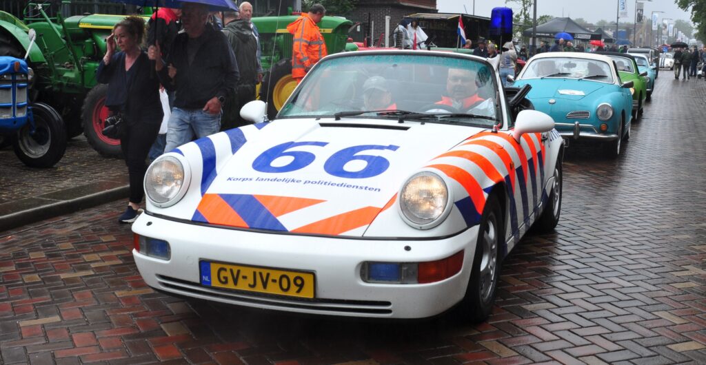 Terwijl de verkopers van automobilia nog volop bezig zijn hun marktkramen in te richten, komen vanaf negen uur de eerste deelnemers onder de entree-boog door de Havenstraat ingereden. Klassieke kanjers, machtige muscle-cars, sprankelende schoonheden, vooroorlogse vierwielers, vitale youngtimers hakkehakkepuffen langzaam het Festivalterrein op. He, kijk, een Donkervoort (één van de alleroudste nog bestaande Donkervoorts, want chassisnummer 0045, blijkt later). En zie daar: twee Politie-Porsches met – stiekem – heel even het blauwe zwaailicht en de sirene aan…